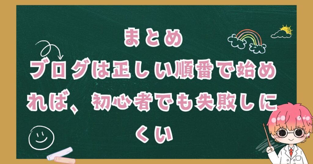 まとめ:ブログは正しい順番で始めれば、初心者でも失敗しにくい