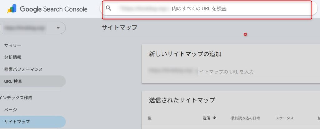 Google Search Consoleの左のメニューバーにあるインデックス、サイトマップへと進みます。