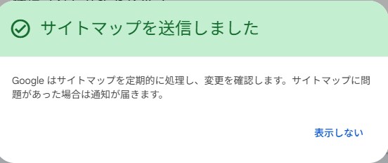 下記のような「サイトマップを送信しました」と表示されれば成功です。