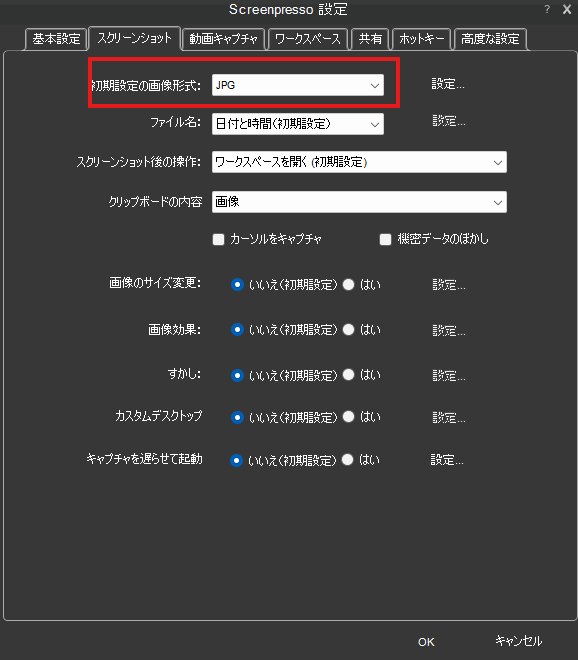 画像形式(PNG/JPG)の使い分け設定