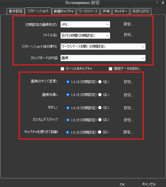 スクリーンショット設定