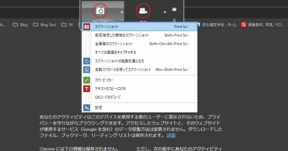 そこからスクリーンショットをクリック。